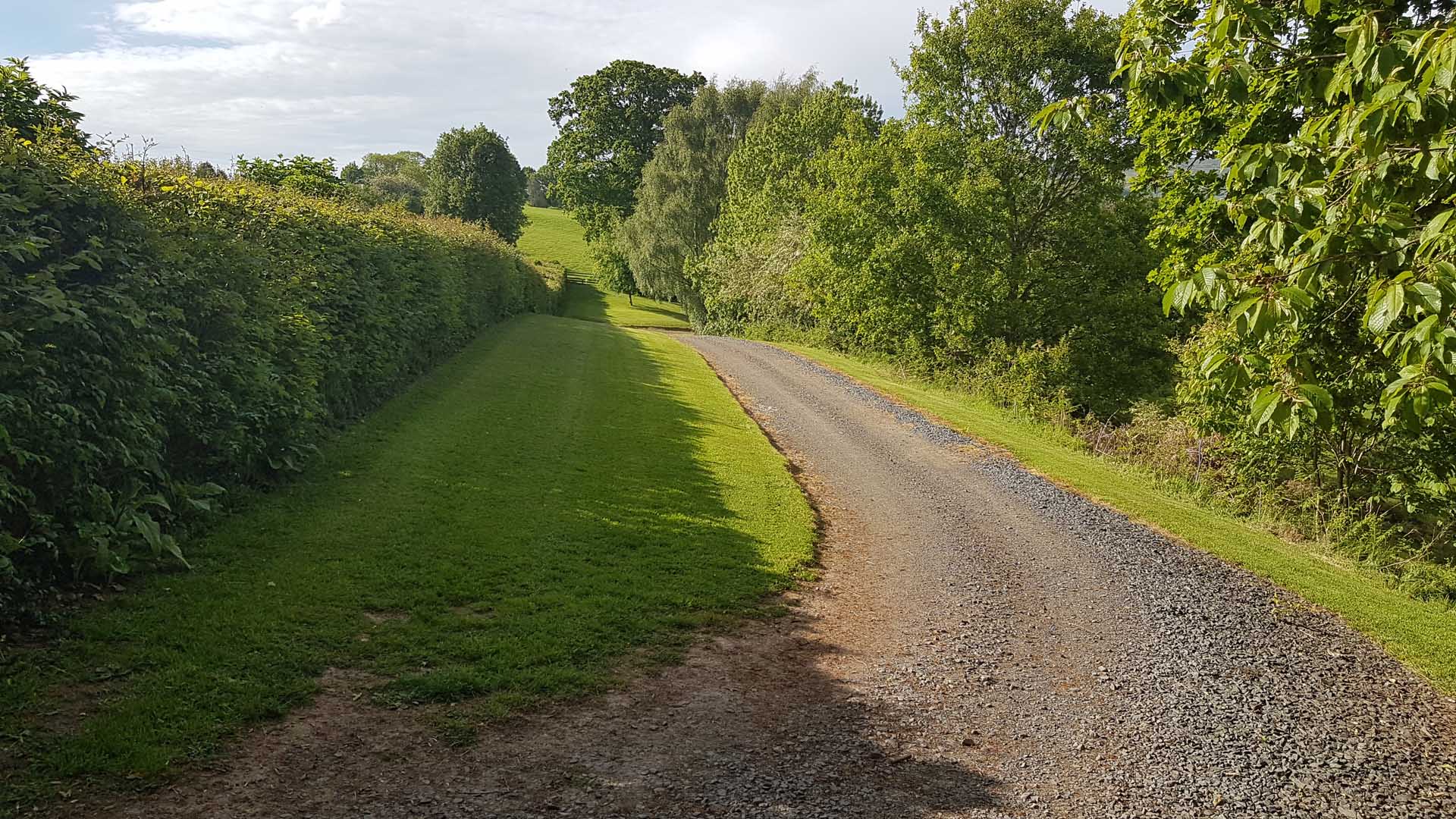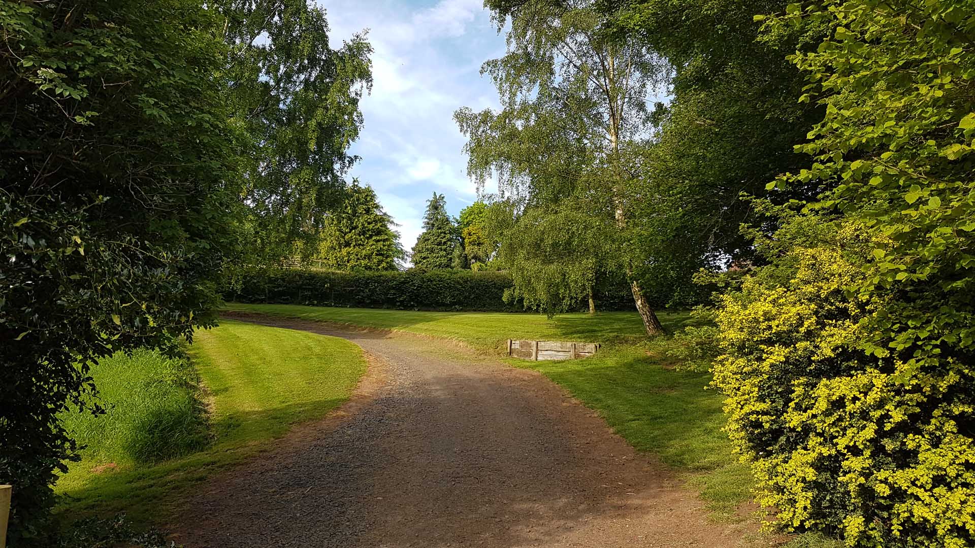 The main gates lead through to both the parking area with parking for 6+ cars and down to the stable yard area and tracks to the fields. Further access to the fields is available from the lane at the northern perimeter of the grounds.